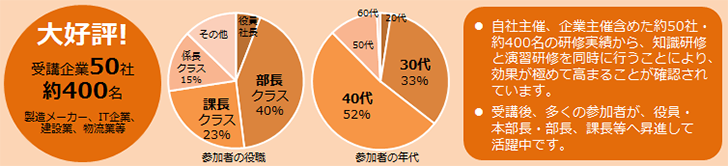 - 他企業の受講者との意見交換で新たな発見・気づきに出会えます。