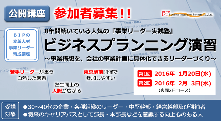 事業リーダー実践塾 2015『ビジネスプランニング演習』